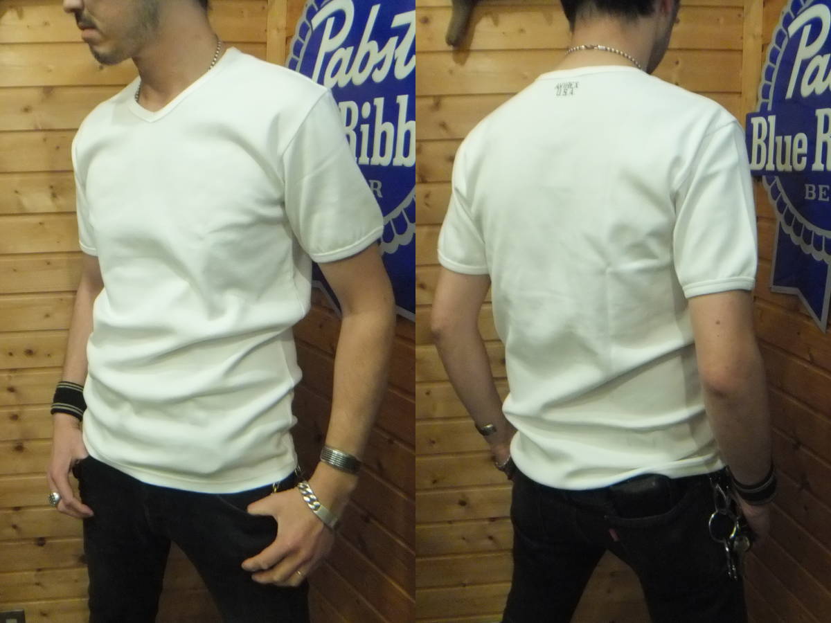 > アヴィレックス正規店 リブ素材 Vネック半袖Tシャツ[白][XL]新品 6143501-01 ※〒レターパック発送