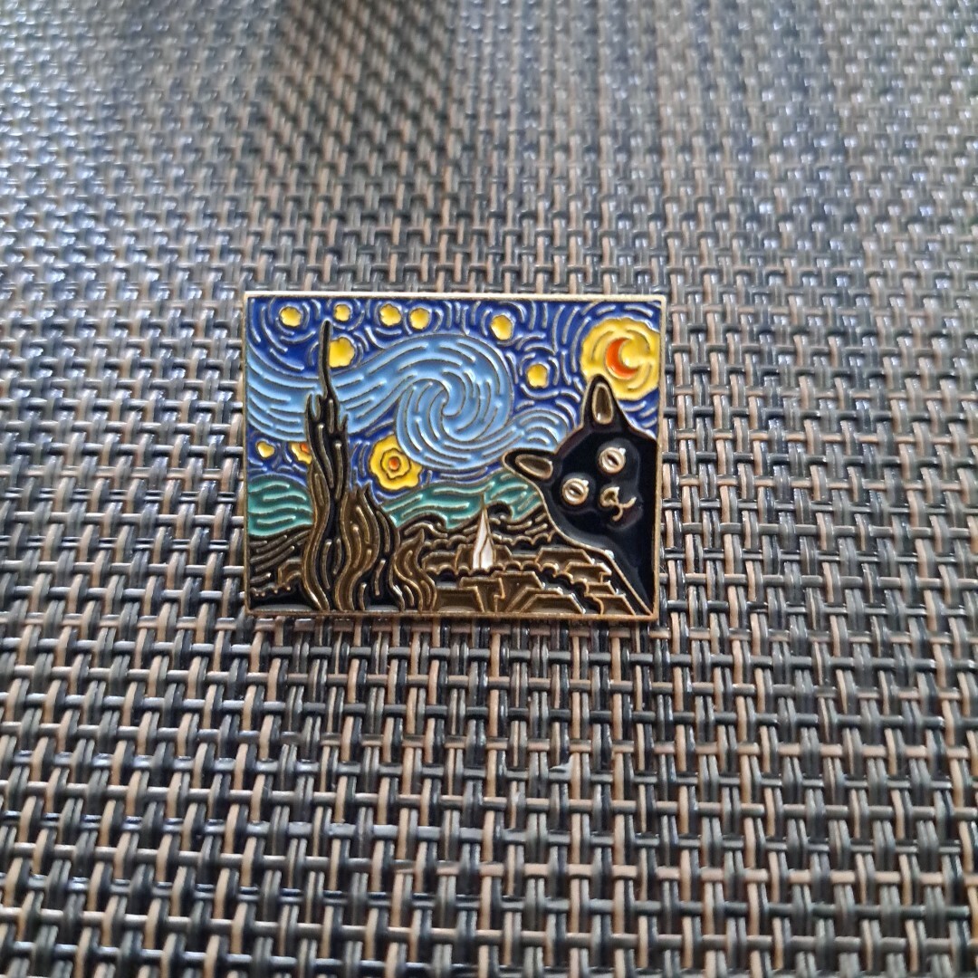 - 【新品未使用】 絵画 × 猫 星月夜 ピンバッジ / ゴッホ ほしづきよ ホシヅキヨ ねこ ネコ ピンバッチ ピンズ