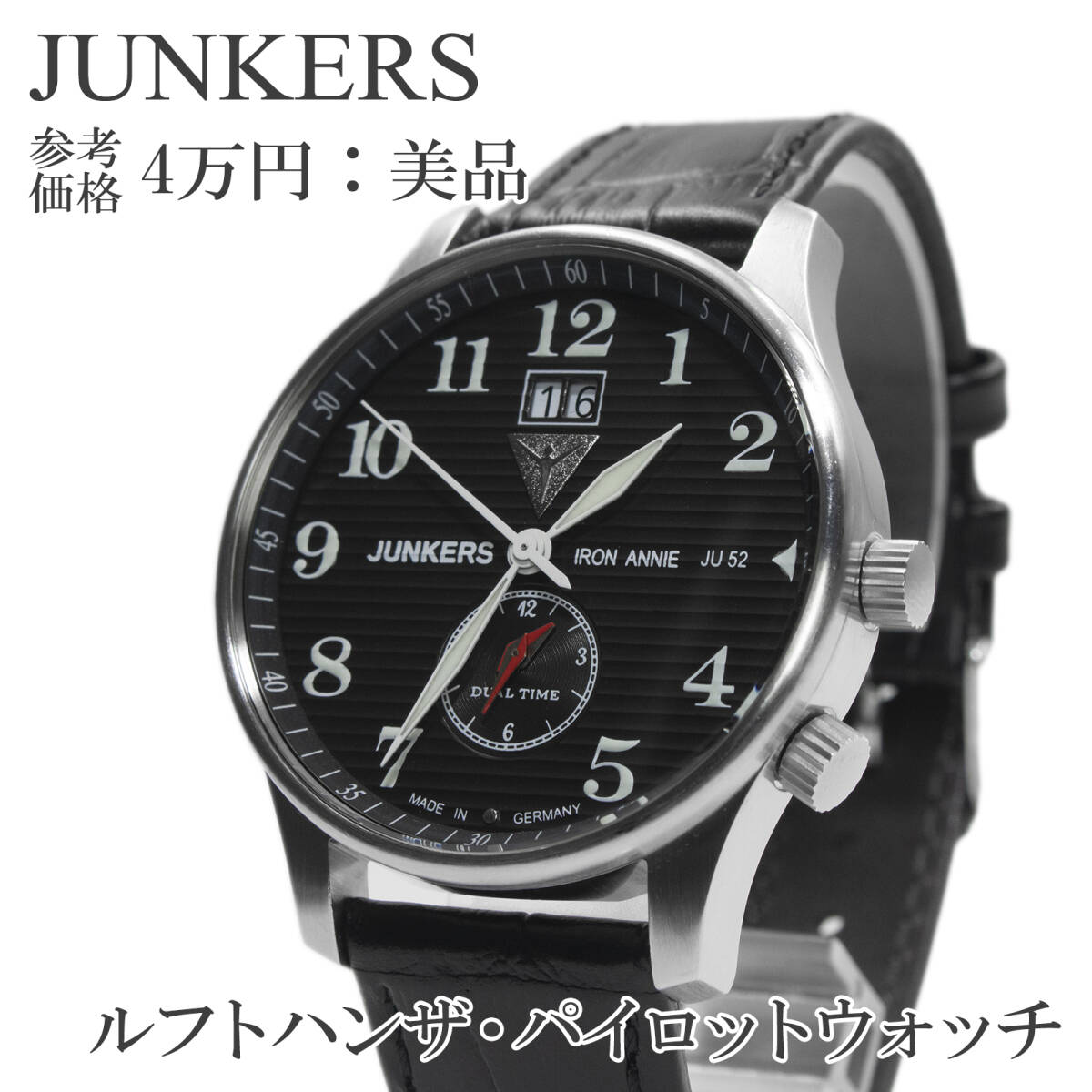 - 送料無料 ユンカース 腕時計 メンズ アイアンアニー ルフトハンザ JU52 黒 白 ロゴ 革ベルト ブランド パイロットウォッチ ドイツ製 X235