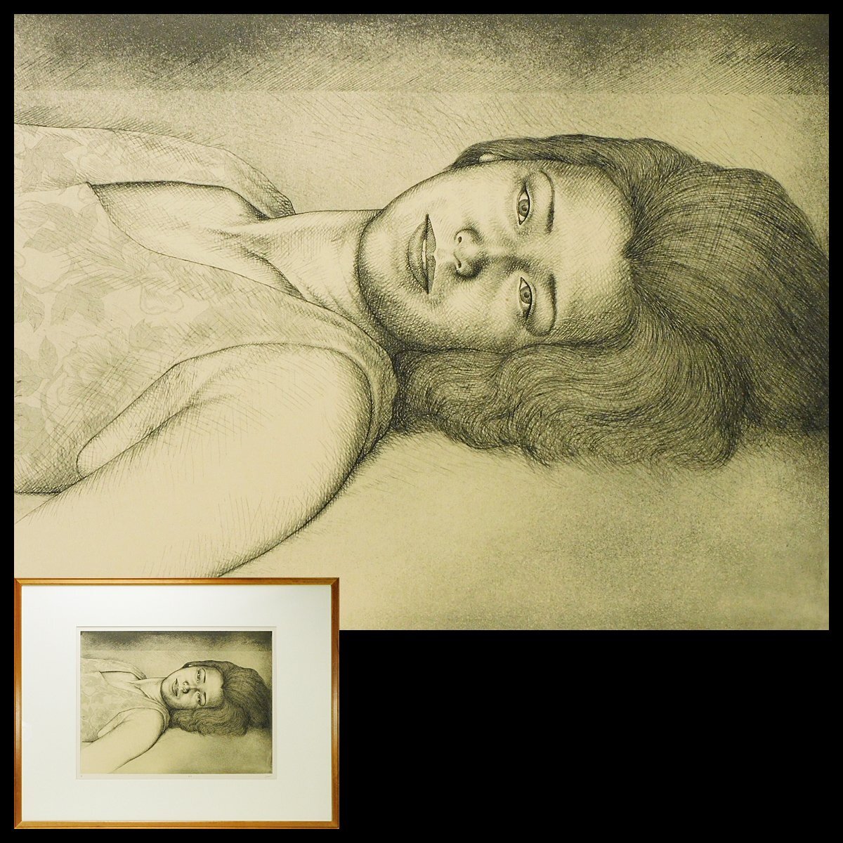> 相笠昌義 夏の女 銅版画(エッチング)額装 1989年 大判 77GALLERY取扱 専用箱 美術館等多数収蔵 s25060204