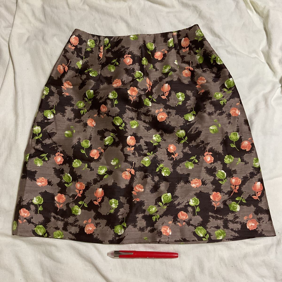 - スカート ミニスカート サイズ3 実測wゴム無64丈50cm ポケ無 別布裏地 ポリエステル100% 薄手 焦茶色に花柄 Ici et La 日本製