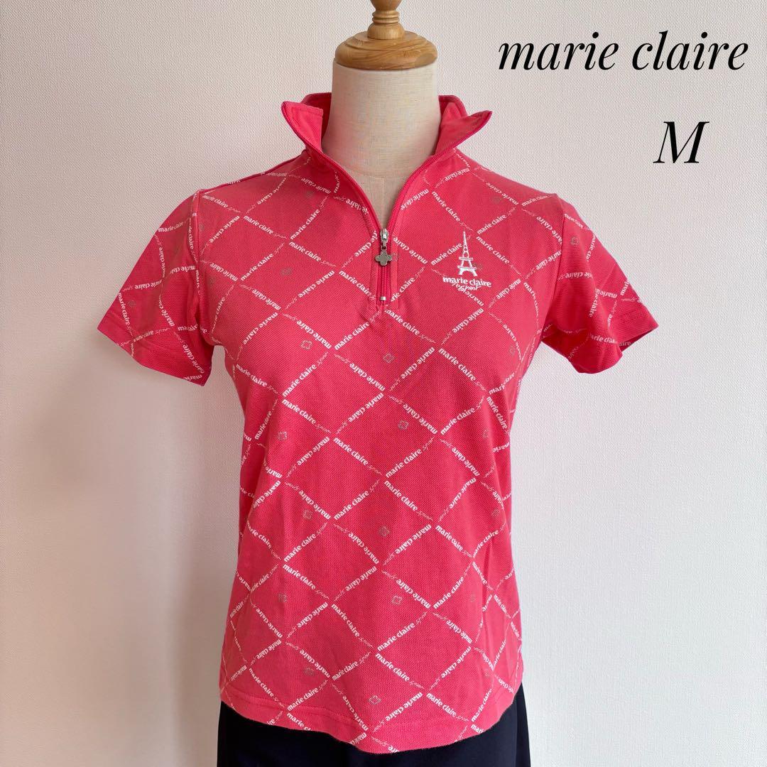 - marie claire マリクレール レディース ハーフジップ 刺繍ロゴ 半袖シャツ レッド系 M