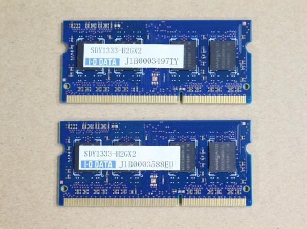 > I・O DATA PC3-10600 SDY1333-H2GX2 ノート用メモリ 2GB×2枚組