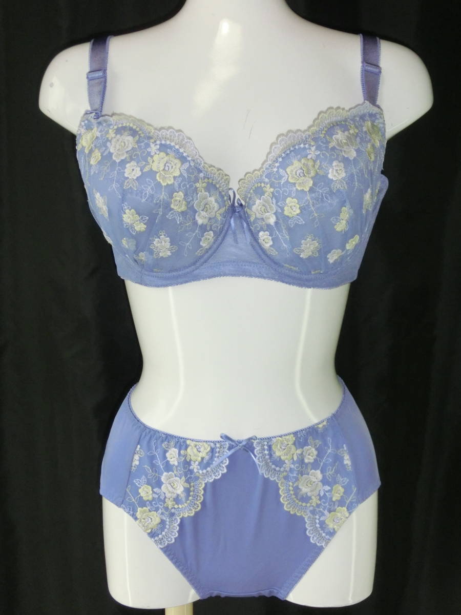 > ☆【F95 3L~4L】パープル 小花柄刺しゅうブラジャー・ショーツセット《66 4ー2》