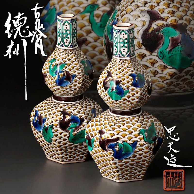 - ★【古美味】宮本忠夫 古九谷風徳利 一対 茶道具 保証品 aFL3