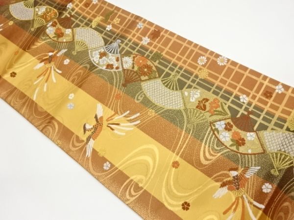 > ys7406473; 宗sou 扇に流水・鳳凰・草花模様織出し袋帯【着】