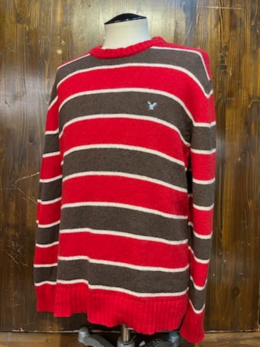 > L458 メンズ ニット AMERICAN EAGLE OUTFITTERS アメリカンイーグル レッド ボーダー コットン ウール クルーネック セーター 古着 / L (6)
