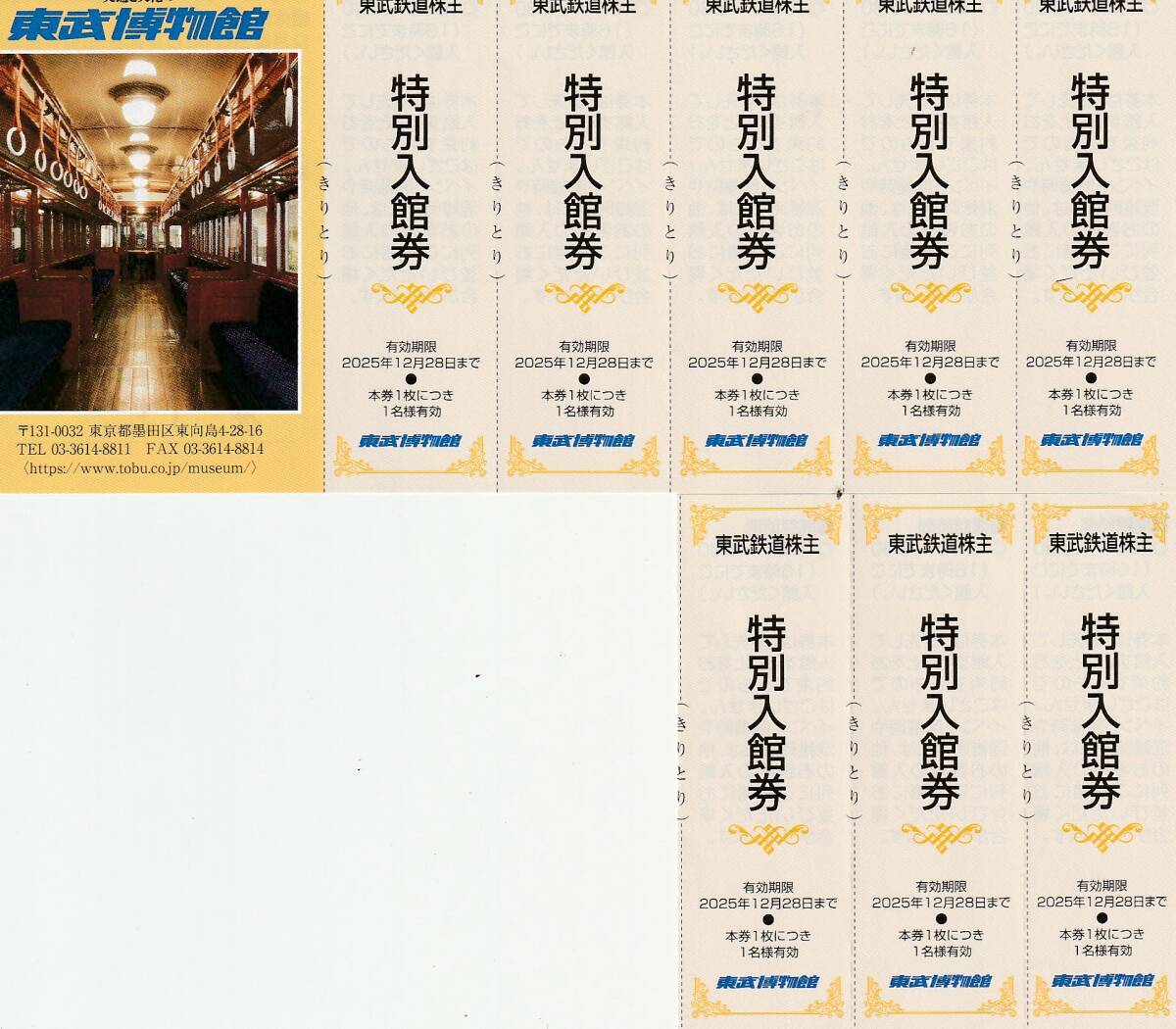 - 東武鉄道★株主優待券★東武博物館★特別入館券★8枚★送料85円~★即決
