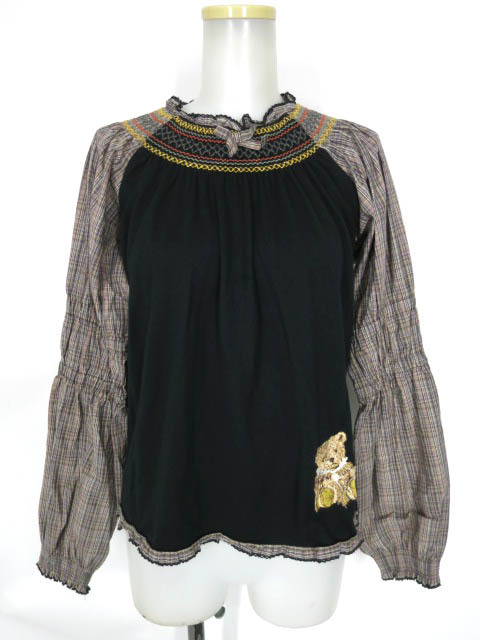 - PINK HOUSE テディベア刺繍 チェック柄切替カットソー / ピンクハウス [B68807]