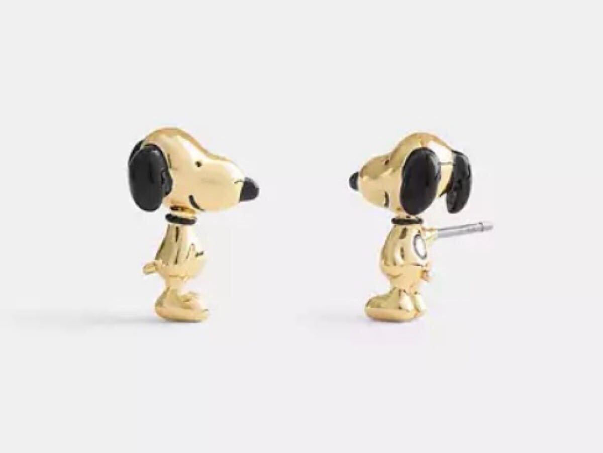 - 送料込専用袋付●新品●完売品 COACH X PEANUTS スヌーピー ピアスE ゴールド 1.3×0.9cm 2025新作 ピーナッツ コーチ
