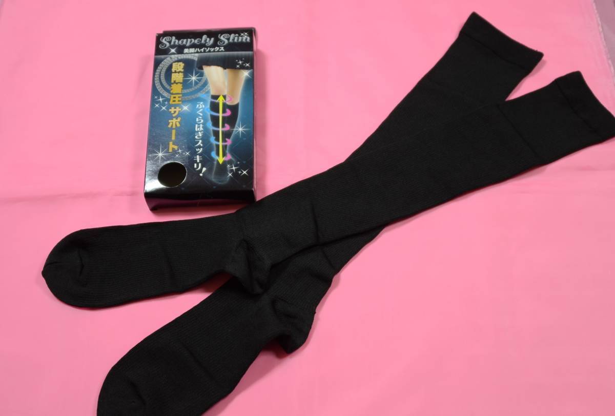 - 『送料無料』 ★ etu★着圧ハイソックス★無地★黒/ブラック★22~24cm★