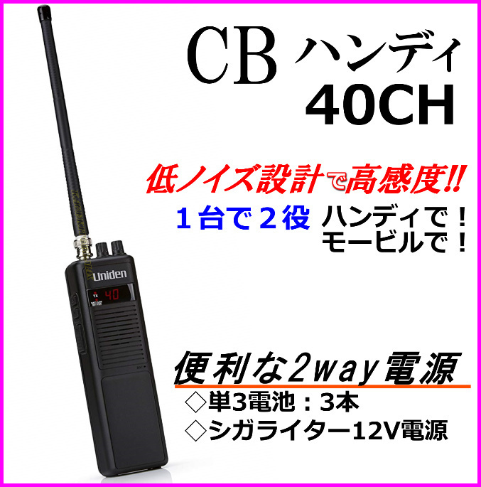 - ハンディ! モービルで! 12V外部電源ケーブル付 1台で2役 高感度 40CH ハンディ CB無線機 新品♪単三電池で動く BNCコネクター/ 過激飛びMAX