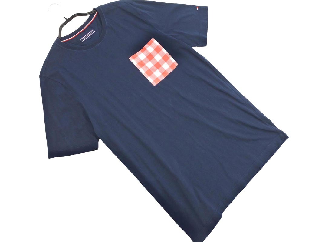 > ネコポスOK TOMMY HILFIGER トミーヒルフィガー チェック ポケット Tシャツ sizeS/紺 ■◆ ☆ ffb1 メンズ