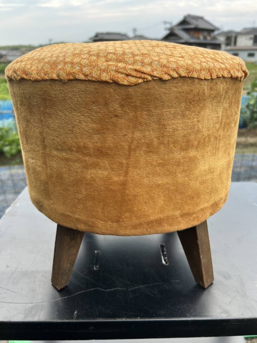 - 昭和レトロ家具 丸椅子 アンティークスツール椅子 布カバー 座椅子 四脚スツール ミニ スツール オットマン 低い椅子 木脚 ミニスツール