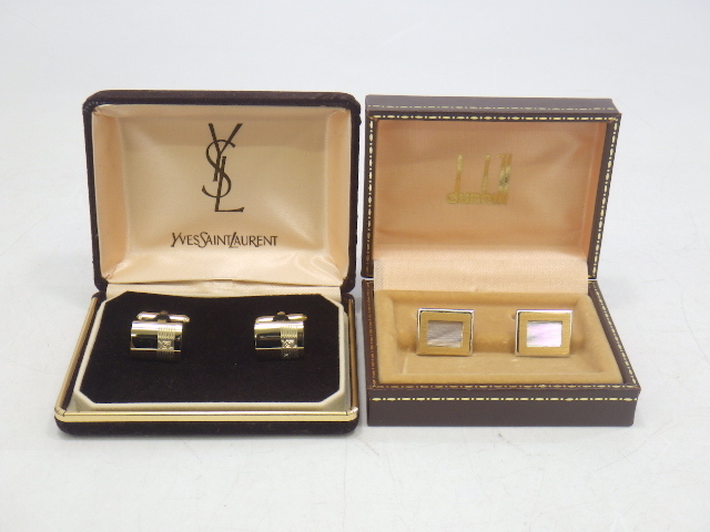 - h5F064Z- YSL イウ゛・サンローラン dunhill ダンヒル カフス 2点 ケース付