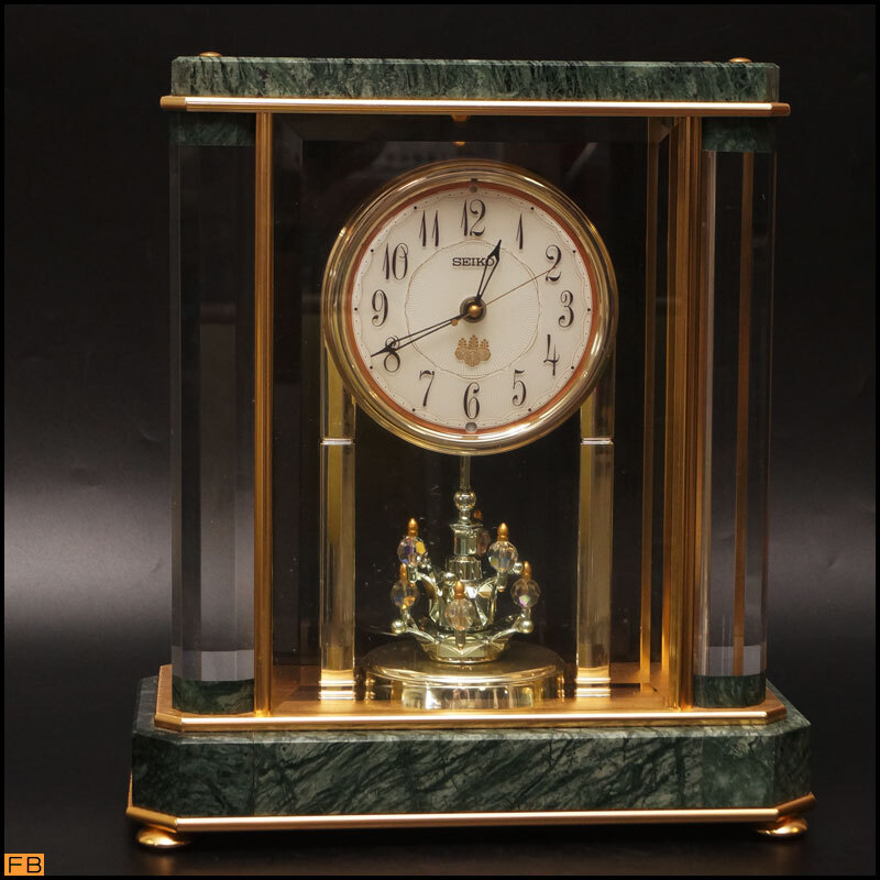 > 1731-非売品◆セイコー 置時計 HW926G 内閣総理大臣贈呈 大理石 蛇紋石 カットガラス枠 稼動品 電波時計 オルゴール SEIKO