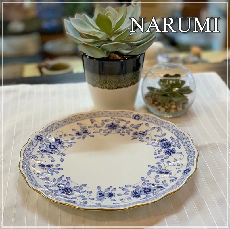 - 【福岡】NARUMI ナルミ ミラノ ミート皿 ディナー皿 プレート 金彩 ボーンチャイナ ホワイト ブルー 【ME1008-1】