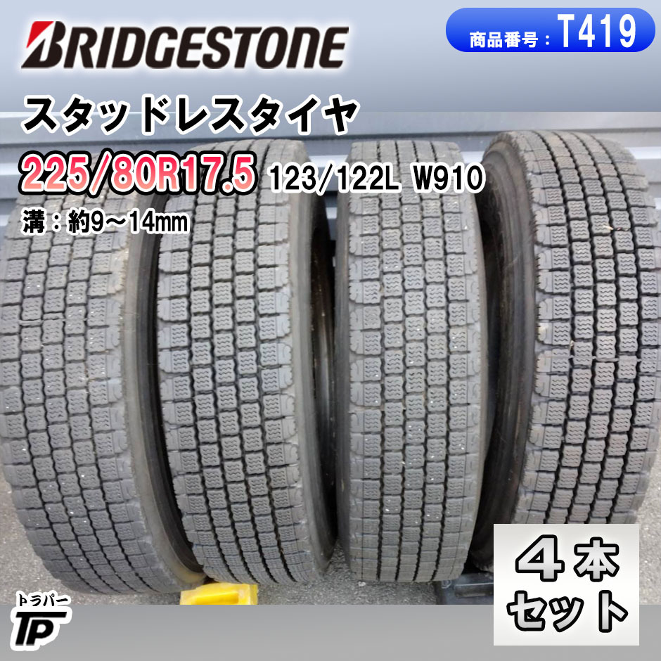 > 225/80R17.5 123/122L W910 ブリヂストン スタッドレスタイヤ 4本 2020~2021年製