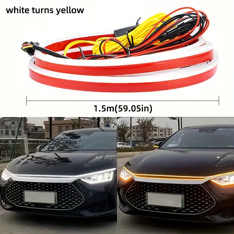 - 車用 LEDテープライト 流れるライト ボンネットライト 150cm ホワイト イエロー 12V ソフト シリコン 明るい 両面テープ 薄型 汎用品 t6874