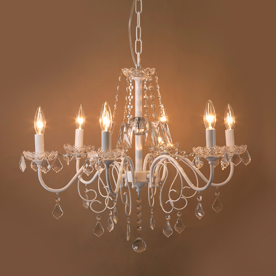 - シャンデリア 6灯 LED対応 E12 シーリングライト 天井照明 吊り下げ 白 ホワイト クリスタルガラス 豪華 ゴージャス シャンデリア電球 付属