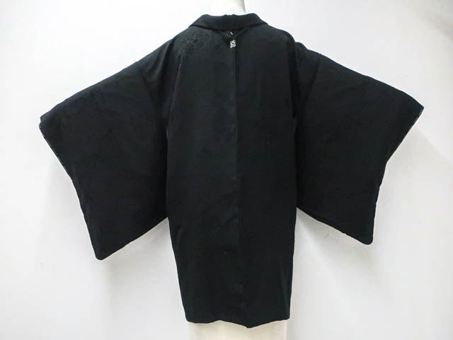 - 《京都一輝堂》【着物】黒羽織 一つ紋 花地紋 羽織紐別売り 身丈約84cm 裄丈約63cm r7z06-606