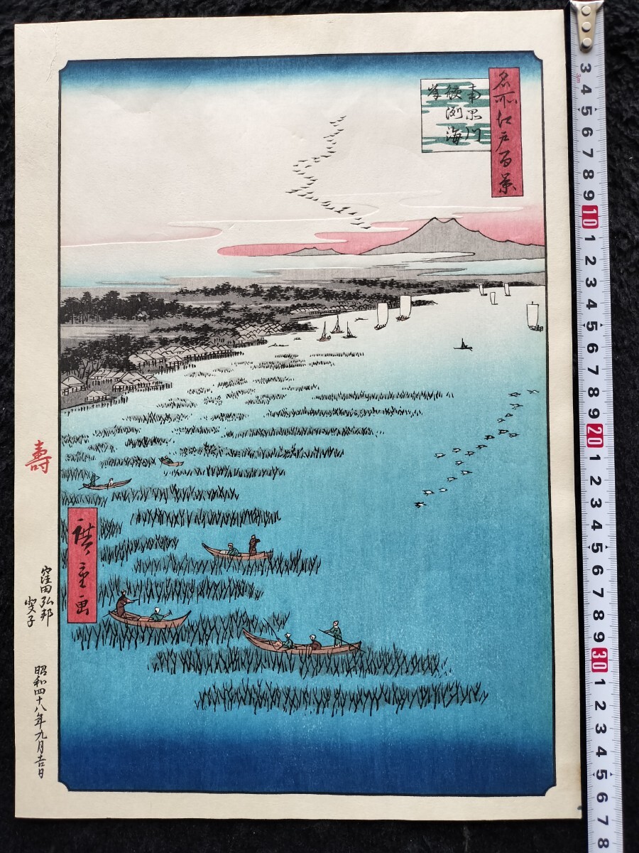 - 【真作】昭和期 浮世絵木版画 歌川広重「名所江戸百景 南品川鮫洲海岸」名所絵 大判 錦絵 保存良い