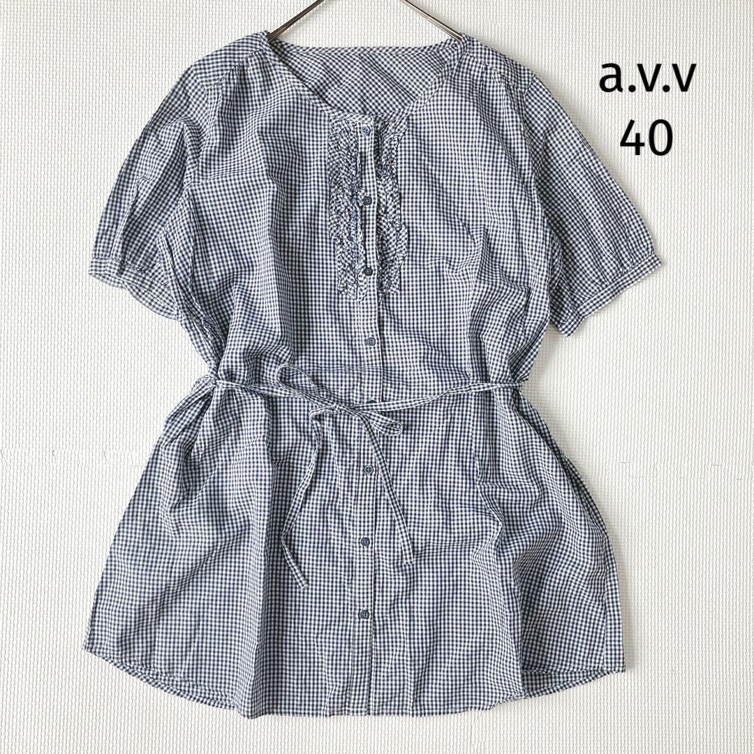 - a.v.v ブラウス チュニック【40】ギンガムチェック ギャザー フリル
