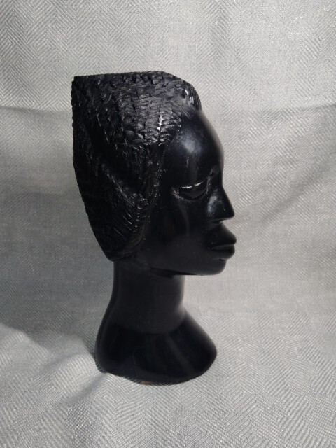- 本黒檀? 堅木 漆黒 高19cm アフリカ系の顔?