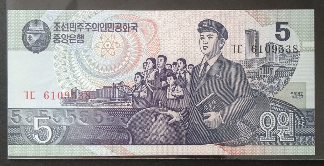 - 北朝鮮・5ウォン紙幣・2(1枚)【中古】