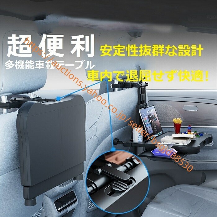 - 車載 テーブル 後部座席用 リアトレイ 食事デスク ホルダー付き 折り畳み 360度回転 角度調整可能 収納便利 zga-2409