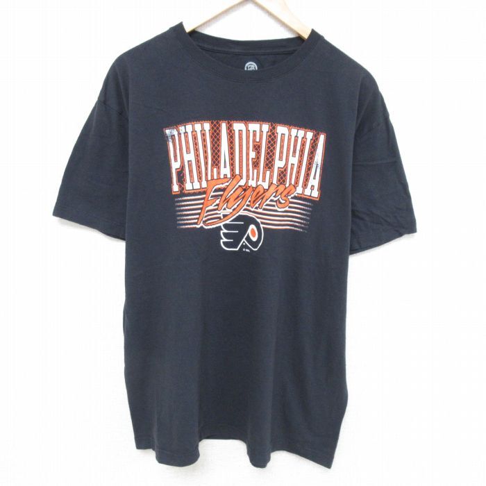 - L/古着 半袖 Tシャツ メンズ NHL フィラデルフィアフライヤーズ クルーネック 黒 ブラック アイスホッケー 25jun11 中古