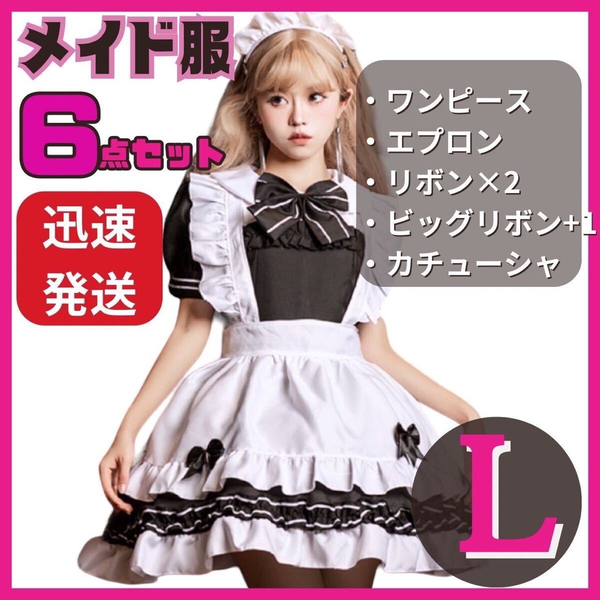 - コスプレ メイド レディース L ワンピース 黒 ブラック フリル ハロウィン プレゼント エプロン おしゃれ
