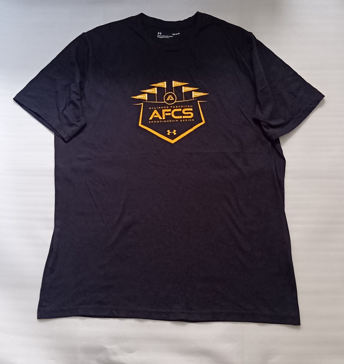 > ☆UNDER ARMOUR TEE サイズL半袖TシャツLOOSEスポーツ黒ブラック山吹色AFCSファッションCHAMPIONSHIP SERIESティー洗濯済 アンダーアーマー