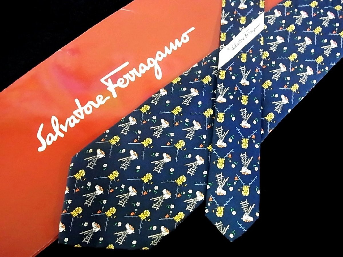 > ★今週の特売★6416★高級ブランド【キャラ柄】★フェラガモ【ゾウ ライオン 動物 花 植物 柄】ネクタイ★