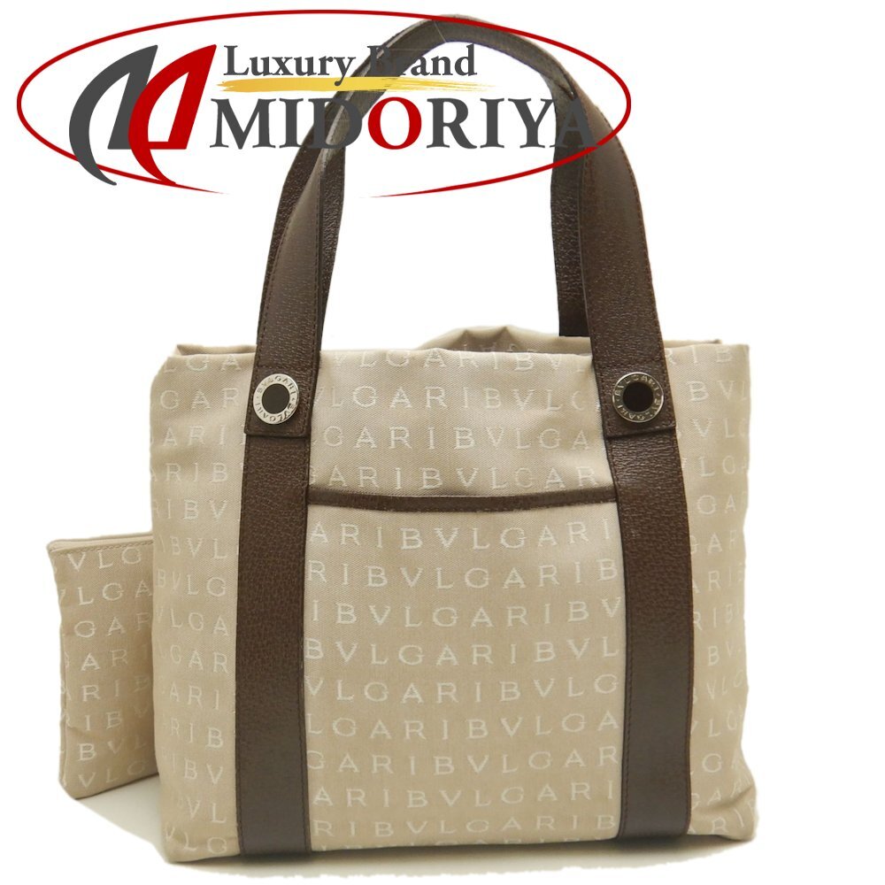 - BVLGARI ブルガリ ロゴマニア トートバッグ キャンバスxレザー ベージュ/252838【中古】