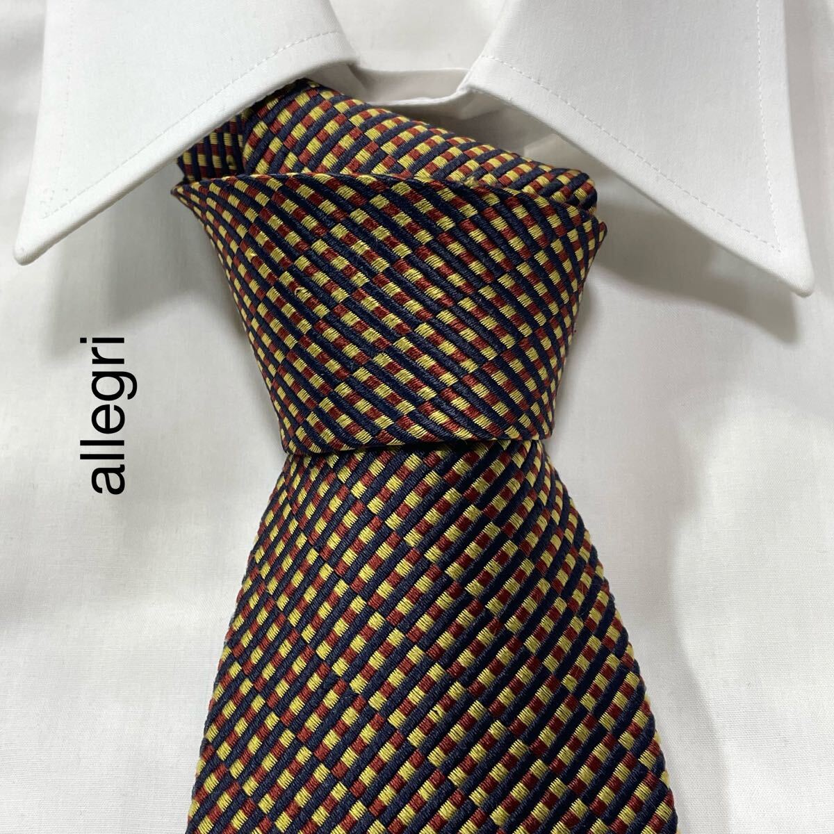 - allegri アレグリ パターン柄 ジャガード ネクタイ ゴールド ブラウン ネイビー TG2309