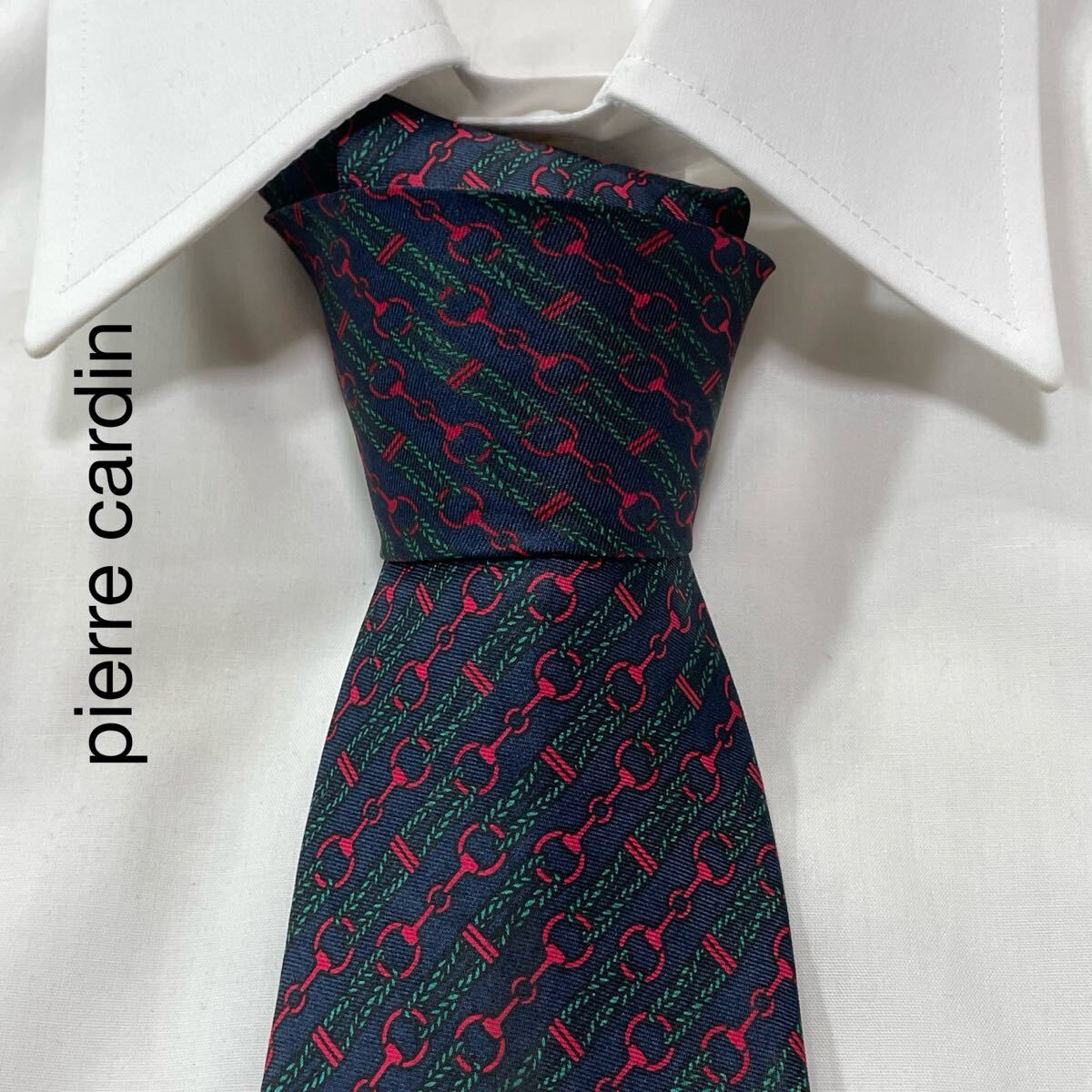 - pierre cardin ピエールカルダン チェーン ストライプ シルク ネクタイ フランス製 ネイビー TG2349