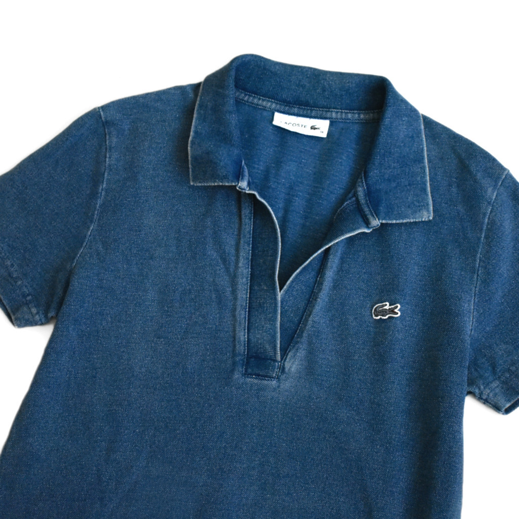 - LACOSTE ラコステ インディゴ 藍染 ポロシャツ 38 レディース 鹿の子