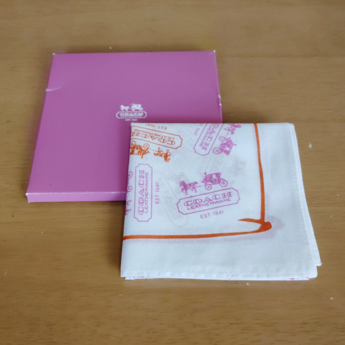 - COACH コーチ ハンカチ バンダナ ホワイト ピンク オレンジ レディース