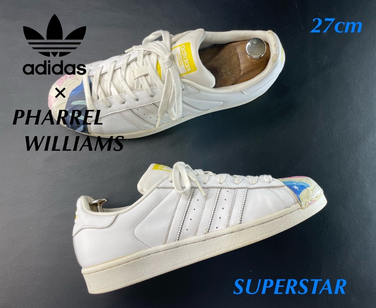 - 名機降臨!定17600円!名作グラフィックトゥ!アディダス×ファレルウィリアムスコラボ【スーパースター】レザースニーカー!ホワイト 27cm