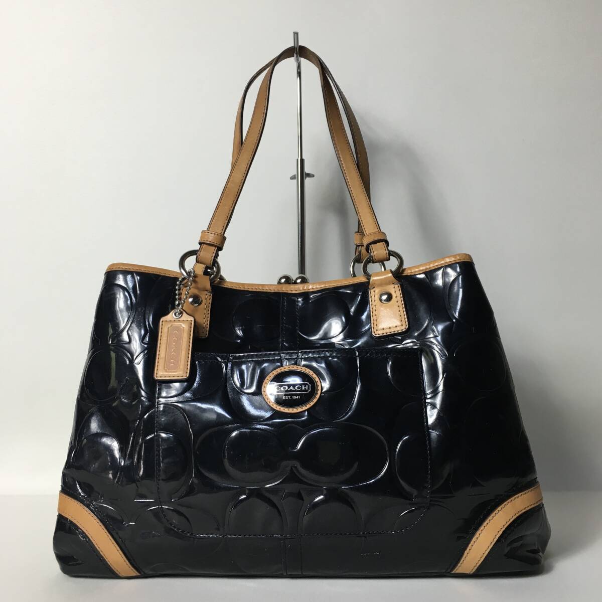 - 75B303|コーチ シグネチャー トートバッグ ブラック がま口