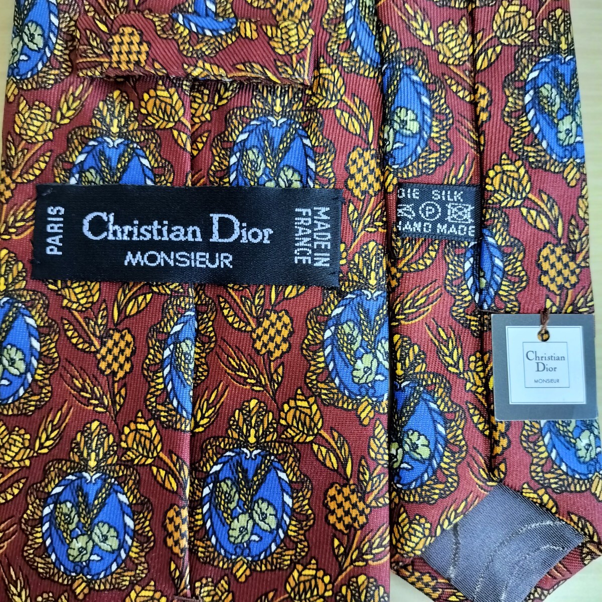 - Christian Dior(クリスチャンディオール)赤青ベージュ花模様のネクタイ新品 未使用 タグ付き