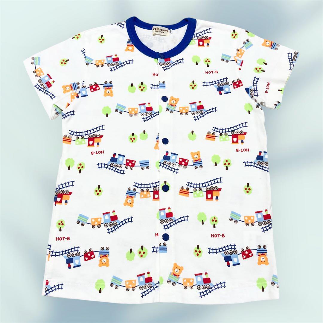 > 新品未使用 ミキハウス 120 夏物 トップス 半袖 パジャマ Tシャツ カーディガン クマ柄 プッチーくん