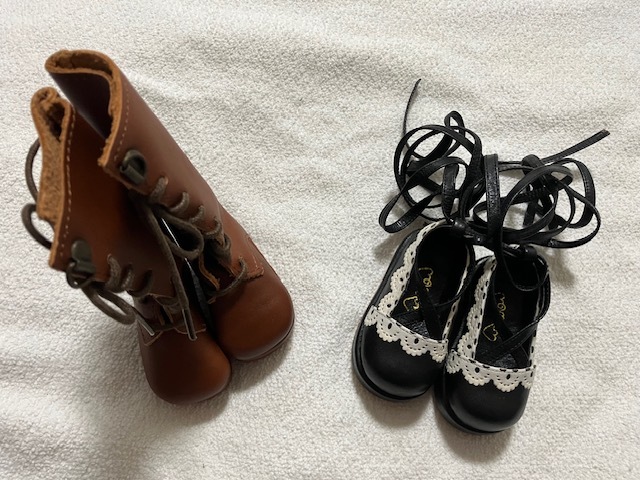 > ドルフィー 靴 シューズ ブーツ レース 編み上げ 厚底 黒 茶色 2足セット ドール用 ロング モノトーン ロリータ
