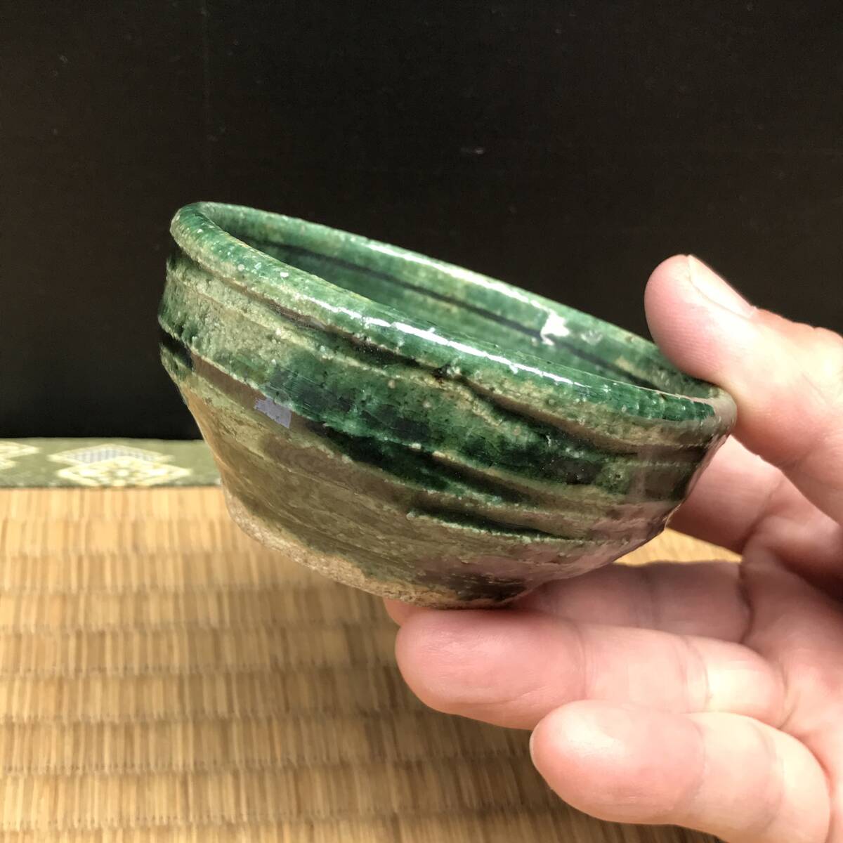> 青織部の盃(米)魯山人星岡窯銘印?ぐい呑み 酒器 猪口 小鉢 杯 珍味入れ(R70515_A)