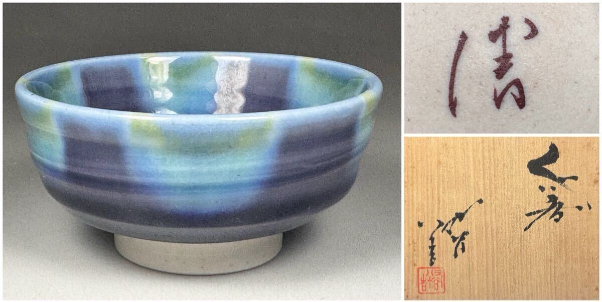 > 人間国宝 三代 徳田八十吉 造 碧明釉 ぐい呑 茶道具 酒呑 酒盃 酒杯 酒器 共箱 共布 栞 九谷 九谷焼