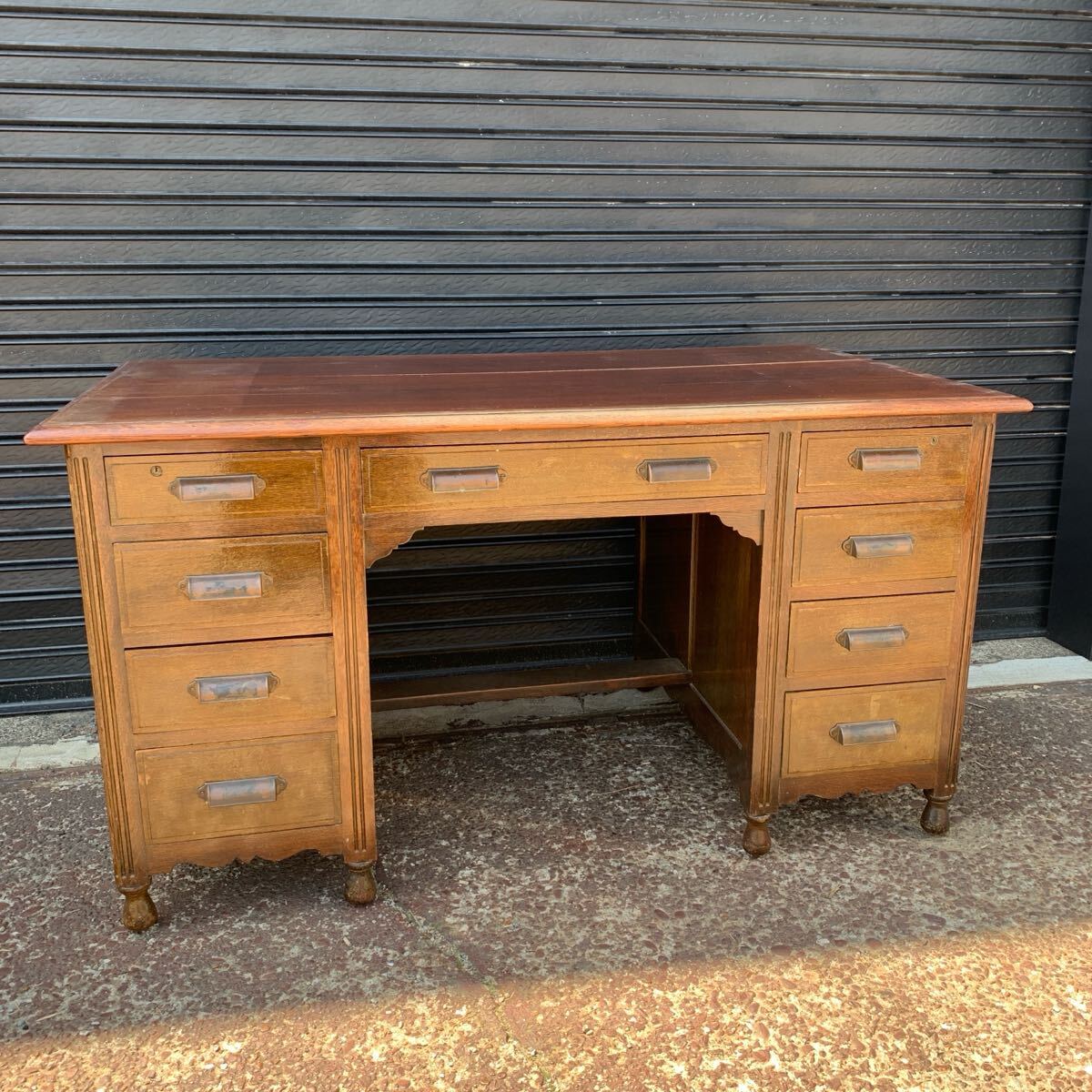 - 書斎机 勉強机 書斎 アンティーク 事務机 和風 レトロ 木製家具 引き取り歓迎【新潟県 上越市】縦76×横134×奥行75㎝