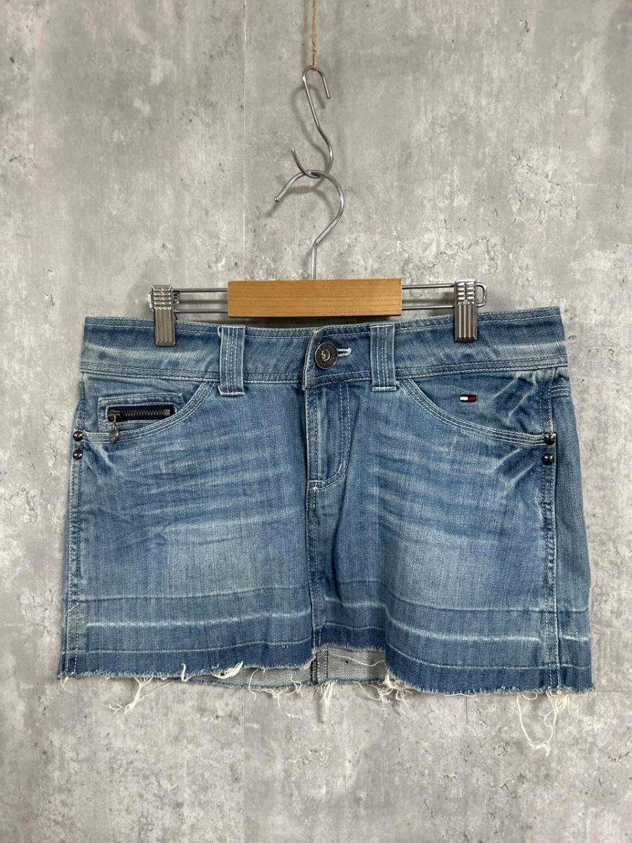 - tommy girl トミーガール ダメージ加工 Aライン 台形 デニムスカート sizeS/赤 ■◆ レディース