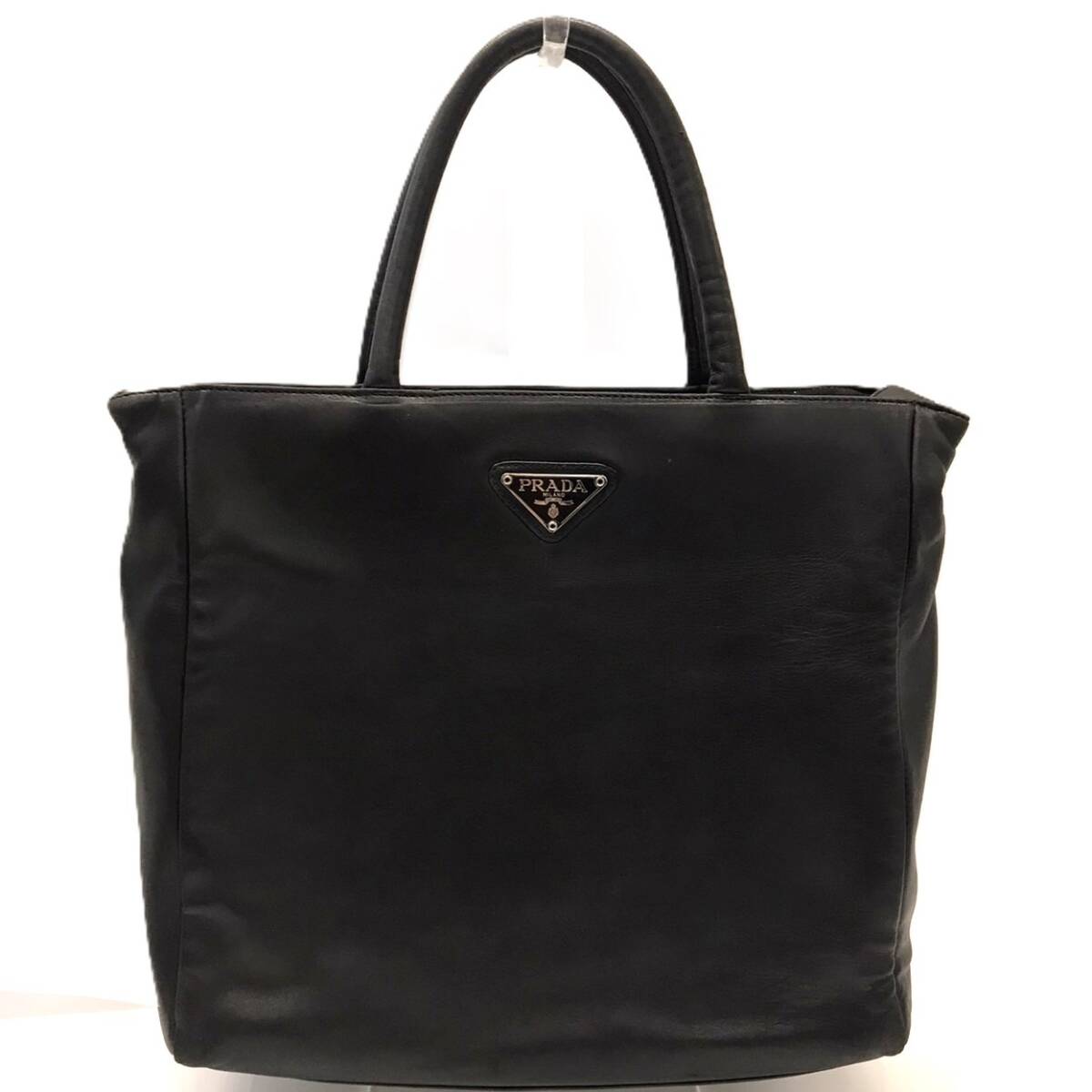 > プラダ ナッパ ハンドバッグ レザー トライアングルロゴ ブラック メンズ 羊革 PRADA ABランク 中古