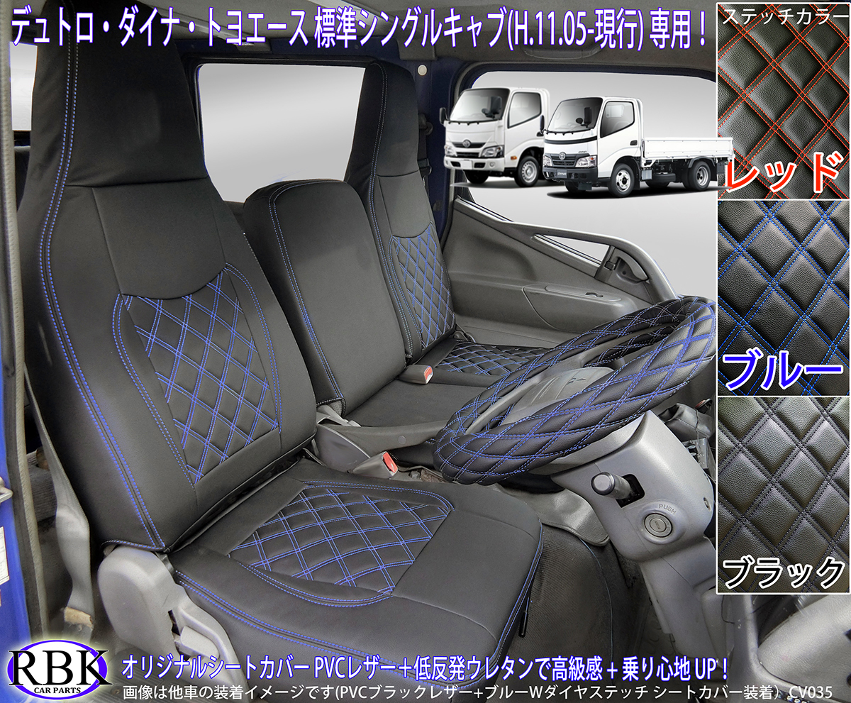 - トヨエース デュトロ ダイナ 標準シングルキャブ (H11.05-ON) トラック シートカバー カラー 選べるステッチ 黒 白 赤 青 カスタム 0368